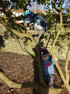 We had some nice sunny days, but still cold! Both boys were climbing the trees.